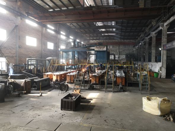 企業高溫熔融作業場所包括鑄造一車間(樹脂砂造型)、鑄造二車間(消失模造型)、鑄造三車間(潮膜砂自動造型生產線、潮模砂手工造型)、鑄造四車間(樹脂砂造型)。主要工藝流程均為澆注模型造型、中頻爐熔煉、高溫熔融金屬澆包吊運、澆注、清砂等,各車間僅造型工藝存在較大差別,其他工藝及設備相似。