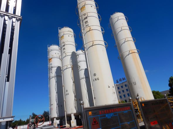 臺(tái)州華潤燃?xì)庥邢薰舅鶎倥_(tái)州濱海LNG儲(chǔ)配站位于臺(tái)州市路橋區(qū)金清鎮(zhèn)濱海工業(yè)區(qū)十條河以西,由公司運(yùn)行管理部進(jìn)行管理。該儲(chǔ)配站現(xiàn)有6個(gè)150m³LNG立式低溫儲(chǔ)罐,總存儲(chǔ)量為340.2t,8臺(tái)氣化量3000 m³/h的空溫式氣化器,6臺(tái)氣化量4000N m³/h的空溫式氣化器,設(shè)計(jì)小時(shí)最大供氣量為24000 m³/h,員工8人。